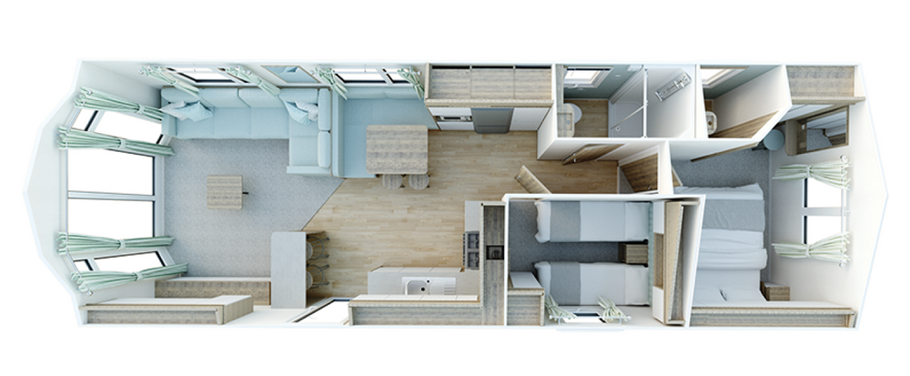 The Sierra has a stylish and distinguished look that doesn’t skimp on sophistication. Featuring comfortable and tasteful furnishings throughout, it is a practical and understated holiday home perfect for those who love an open plan layout.